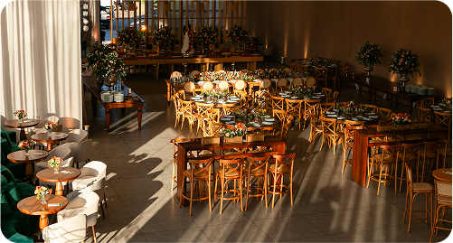 Ideal para eventos menores ou como apoio ao salão principal, o espaço Elegance tem um charme rústico e acolhedor. Muito usado para cafés da manhã, almoços e recepções, garante praticidade e conforto sem interferir na programação principal.